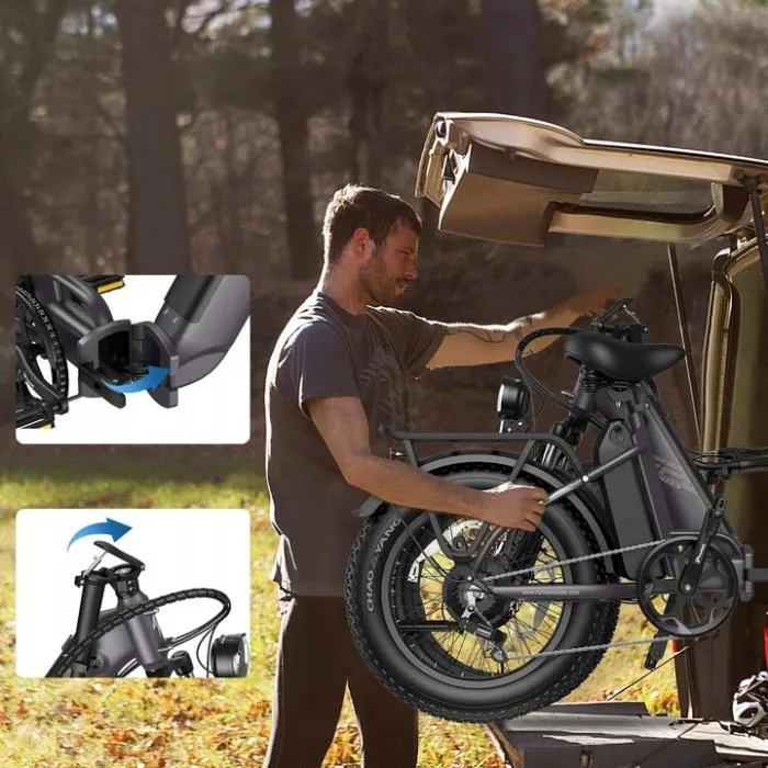 Découvrez le vélo électrique pliant Fafrees FF20 Polar, équipé d’un moteur de 1000W et d’une batterie lithium-ion de 10,4Ah offrant jusqu’à 40 km d’autonomie. Avec ses pneus de 20″ et son cadre en aluminium, il est idéal pour les trajets urbains. Pliable et léger, il se transporte facilement. Charge rapide en 3-4 heures.