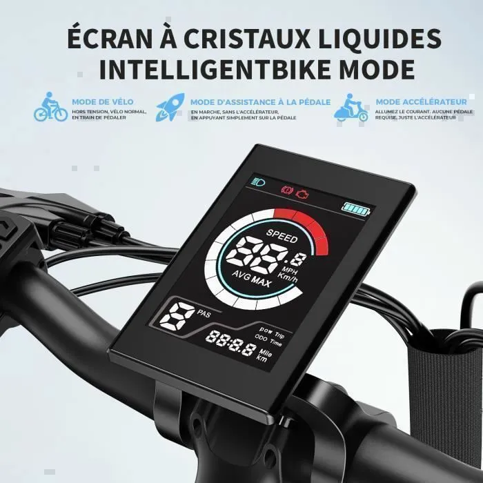 Le vélo électrique JASION est le compagnon idéal pour les trajets quotidiens et les excursions. Avec son écran LCD intelligent, son siège spacieux et son design épuré, il offre une expérience de conduite confortable. Équipé d’une batterie amovible de 48V/11AH et d’un moteur puissant de 500W(PIC 750W), il vous permettra de parcourir de longues distances avec facilité.