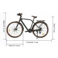 SpécificationsModèle : F700-1 (batterie non amovible)Couleur : GrisCapacité de la batterie : 36 V 10 AhPuissance du moteur : 36 V 250 WCouple : 42 N.MAffichage : Écran LCDVitesse maximale : 25 km/hCapteur : Capteur de coupleMode de conduite : Mode humain/mode assisté (pas de mode électrique)Autonomie maximale en mode assisté : 60-80 kmMatériau du cadre : Alliage d’aluminiumPente maximale : 30°Roues et pneus : CST 700*38CSystème de freinage : Freins à disque hydrauliquesVitesse variable : Shimano 8 vitessesSuspension : Tube de selle avec amortisseurChargeur : 42 V 2 ATemps de charge : Environ 5 heuresCharge maximale : 100 kgHauteur du guidon : 108 cmHauteur de la selle : 94 cmHauteur idéale : 170 cm et plusÉclairage : Phare avant + réflecteur arrièreGarde-boue : Avant et arrièreÉtanchéité : IP65Poids de la batterie : 3,2 kgPoids net : 21,1 kgPoids brut : 28,2 kgDimensions : 177 x 70 x 108 cmDimensions du colis : 142 x 24 x 84 cmContenu du colis :1 F700-11 Chargeur1 Outils1 Réflecteur pour roue à rayons1 Support pour téléphone portable1 Sonnerie manuelle1 Pédale1 Pointe arrière (préinstallée)