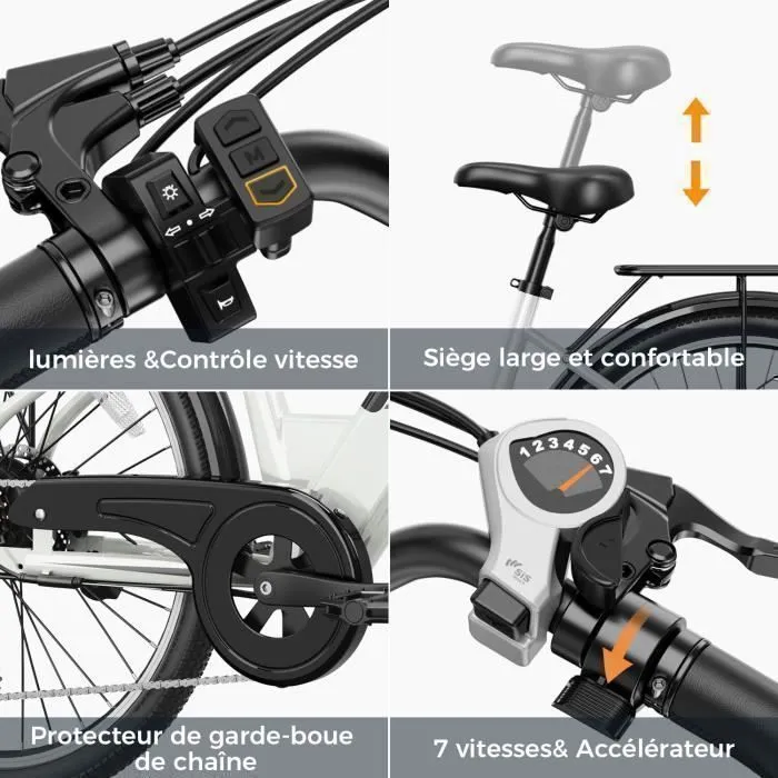 | Description du produit | Le vélo électrique de banlieue JASION Roamer 500(PIC 750W) est doté d’une batterie élégante de 11 AH pour une endurance longue durée avec une seule charge. En tant que vélos électriques de haute qualité et bon marché à vendre, JASION offre à nos clients des performances exceptionnelles. Avec le système de vitesses SHIMANO à 7 vitesses, vous pouvez trouver le mode de conduite parfait pour n’importe quel terrain, garantissant un confort et une vitesse optimaux tout au long de votre trajet. Ce vélo électrique léger est doté de pneus gonflables de 26 x 1.95 pouces, offrant une traction et une stabilité exceptionnelles, que ce soit pour les déplacements quotidiens ou pour les aventures du week-end. Le JASION Roamer est votre choix ultime en matière de fiabilité et de performances. |