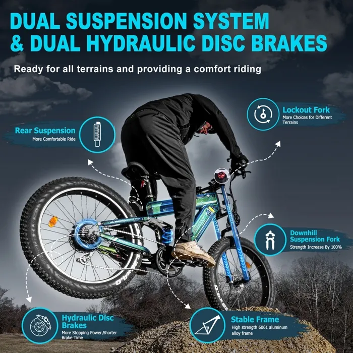 Double suspension et freins à disque hydrauliques : conduites souples et freinages sûrs